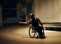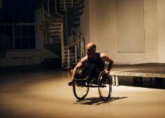 Ratiņkrēslā esošais šova “Dejo ar zvaigzni 4” finālists Mārtiņš Oliņš gatavojas dejas izrādei “Vainīga”.