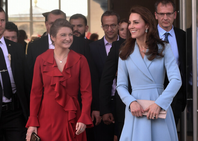 Etiķetes eksperti novērtējuši to kā nedrošības zīmi, ka hercogiene Ketrīna, pat dodoties sasveicināties, mazo „clutch” somiņu tur sev priekšā ar ...