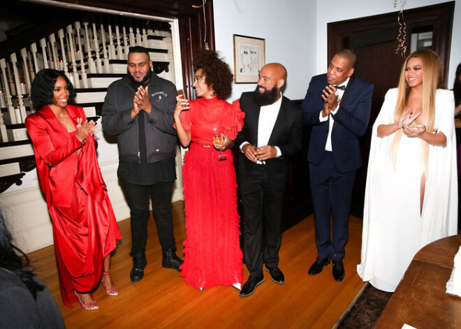 Bejonsa ar ģimeni filmas „Skaistule un briesmonis” pirmizrādes vakarā