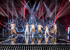 Pirmā pusfināla dalībnieki mēģinājumā Stokholmas "Globe Arena"