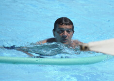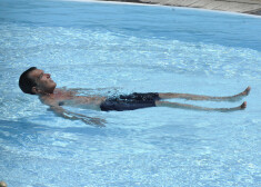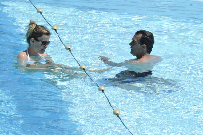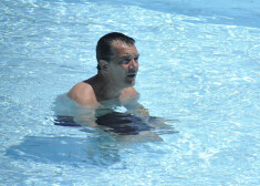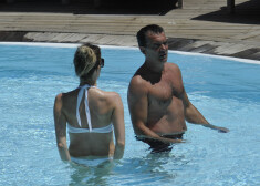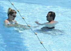 Antonio Banderass ar draudzeni atpūšas Itālijā, plunčājoties viesnīcas baseinā