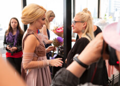 FOTOREPORTĀŽA: Samanta Tīna ar rozā beisbola nūju prezentē jauno dziesmu