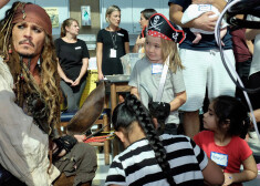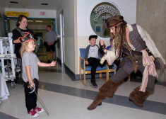 Džonijs Deps, ģērbies kā pirāts, iepriecina slimus bērnus