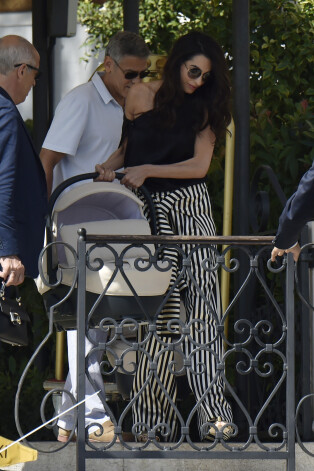 Džordžs un Amala Klūniji ar dvīņiem Venēcijā