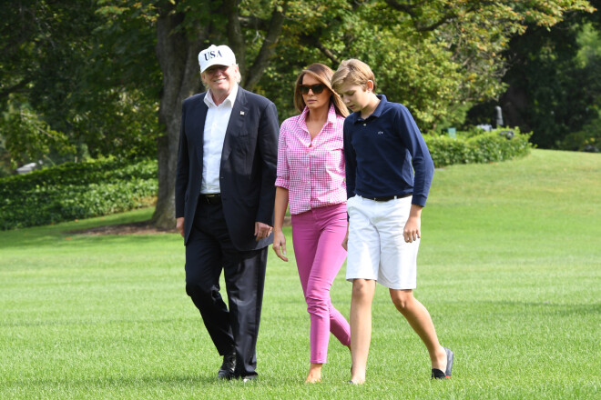 Lai gan Melānijas dēls Barons izpelnījās vislielāko mediju uzmanību šā gada jūnijā, kad pārcēlās uz Balto namu, ASV pirmā lēdija šai dienai bija izvēlējusies 575 ASV dolāru vērtās „Bally” bikses ar platiem galiem. Tām viņa pieskaņojusi „Manolo Blahnik” laiviņas par 595 ASV dolāriem un zīmola „Dolce & Gabbana” topiņu, kas maksā vismaz 100 ASV dolāru. Koptēlu viņa noslēdza, rokās nesot smalko „Hermes Birkin” somiņu, kuras vērtība sasniedz 13 000 ASV dolāru.