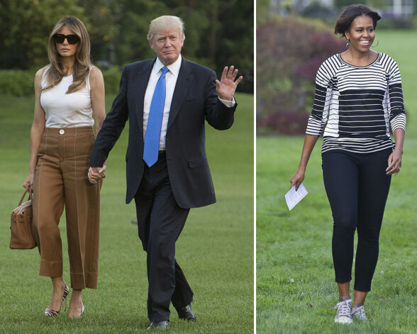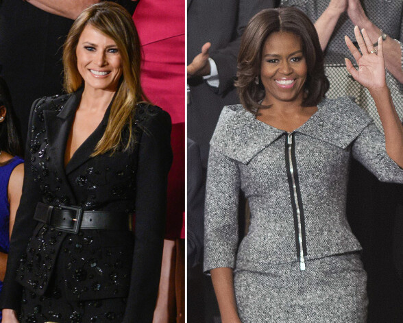 Sabiedrības attieksme pret Melāniju Trampu un viņas priekšteci bijušo ASV pirmo lēdiju Mišelu Obamu nespētu būt vēl atšķirīgāka. Mišelas fani viņu dēvē par sievieti no tautas, kas visbiežāk sabiedrībā esot redzēta zīmola „J. Crew” apģērbos, kas nav pieskaitāmi kosmisko cenu kategorijai. Savukārt Melānija kritizēta pat par fotosesiju, kuras laikā „briljantu virteni uztinusi uz dakšiņas, kā tādu spageti makaronu.” Šāds attēls bija redzams uz žurnāla „Vanity Fair” Meksikas izdevuma vāka.