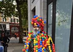 Londonas (Lielbritānija) ielās manīts pilnīgi neprātīgi tērpts vīrietis. Tiek ziņots, ka neprasto tērpu vīrs darinājis paša rokām. Līdzās vīrietim arī redzēta līdzīgi izrotāta mašīna. “Londona ir brīnišķīga,” vēsta uzraksts uz auto.
