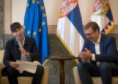 Jauno pasi Fainsam pasniedza Serbijas prezidents Aleksandrs Vučičs.