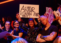 Šova "X faktors" dalībnieki un žūrija tiek posta TV tiešraidei.