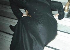 Preslija meita reibumā pakrīt uz kāpnēm