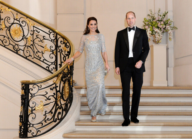 Dodoties uz svinīgo Gala pasākumu Parīzē, hercogiene Ketrīna bija tērpusies gaiši zilā modes nama „Jenny Packham” vakarkleitā. Ketrīna tik bieži izvēlas šī modes nama tērpus, ka daži jau pajokojuši, ka hercogiene, iespējams, ir zīmola pati lojālākā kliente.