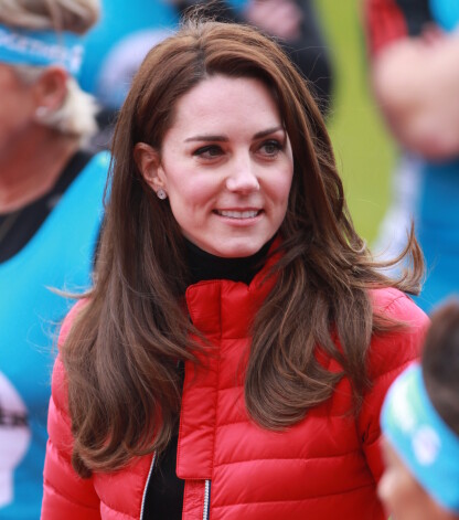 Kad hercogiene Ketrīna apmeklēja Londonas maratona treniņu, viņa bija tērpusies melnās sportošanai piemērotās biksēs un sarkanā dūnu jakā. Viņas ausis rotāja miniatūri auskari, kas netraucē aktīvi darboties. Tie ir zīmola „Asprey 167” juvelierizstrādājumi un maksā 4073 eiro.