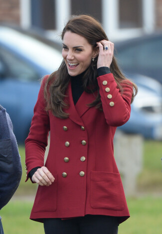 Hercogiene Ketrīna nebaidās no spilgtām krāsām. Tiekoties ar kadetiem gada sākumā, viņa bija izvēlējusies zīmola „Philosophy di Lorenzo Serafini” žaketi no sarkana auduma. Lai gan dubultrindā pogātā žakete nebūt nav lēta, internetveikalā „Net-a-Porter” tā vairs nav nopērkama.