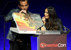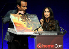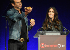 Savukārt aizvadītajā pirmdienā, apmeklējot „CinemaCon” pasākumu Lasvegasā, Megana pat necentās slēpt augošo vēderiņu. Tieši pretēji, ar piegulošās mini kleitas un īsās ādas jakas palīdzību viņa to vēl vairāk akcentēja. Taču nekādus publiskus paziņojumus par savu stāvokli neizteica. Pasākumam aktrise bija izvēlējusies trikotāžas kleitu no modes nama „Versace” kolekcijas, kas maksā 1090 eiro.