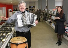 Andris Bērziņš veikala atklāšanā