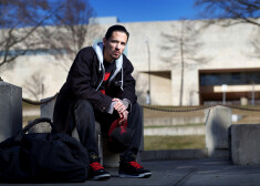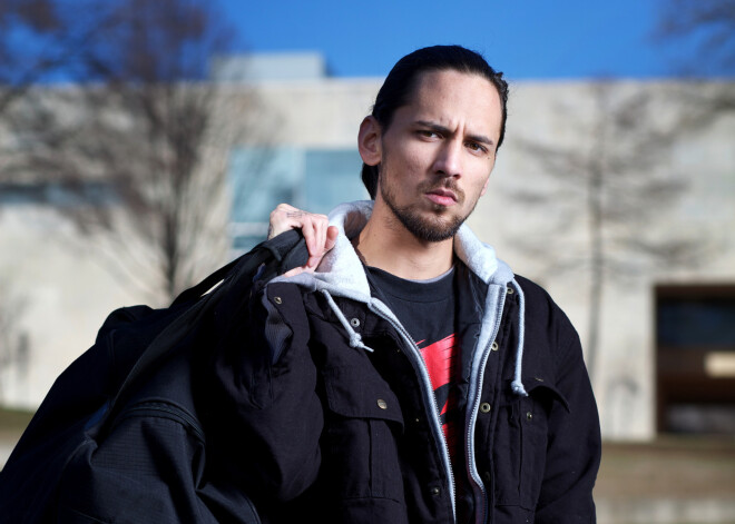 Viņš nēsā tās pašas sarkanās treniņbikses, kas iegādātas pirms četriem gadiem. Pa šo laiku tās ievērojami nodilušas un parādījušies pirmie caurumi.