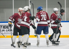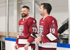 Latvijas simtgades hokejmačā mūziķi sakauj Saeimas deputātu komandu