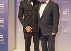 Eltons Džons ar partneri Deividu Fērnišu Cilvēktiesību kampaņas pasākumā Vašingtonā