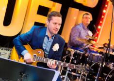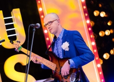 Šova laikā vareni sadziedājās mūziķis Jānis Auzāns un ziņu moderatore Kristīne Anže.