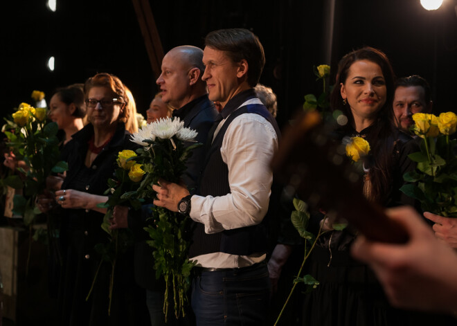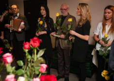 Sveica visi! Pēc izrādes kolēģi sumina Olgu Dreģi 80. jubilejā