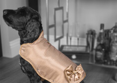 Pasaulē dārgākā drošība tavam sunim. Radīts suņu mētelis no zelta un briljantiem