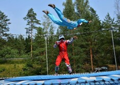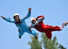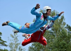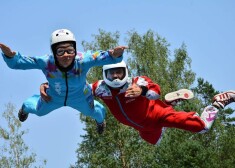 Aktrise Aleksandrova-Eklone saņem kāzu jubilejas dāvanu – lidojumu vēja tunelī.