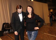 Latvijas mūzikas ierakstu gada balvas “Zelta mikrofons 2016” aizkulisēs dāmas steidza nofotografēties kopā ar aktieri Kristapu Rasimu.