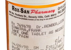 Izsolē piedāvās arī pretsāpju medikamentu pudelītes, ko mūziķim izrakstījis ārsts, lai atvieglotu ciešanas, tuvojoties dzīves izskaņai. Viena no „Vicodin” medikamentu pudelītēm datēta ar 1998. gada 20. aprīli, kas ir mēnesi pirms dziesmas „My Way” izpildītājs devās viņsaulē pēc sirdslēkmes. Prognozēts, ka par šo pudelīti izsolē iegūs 1 200 ASV dolāru.