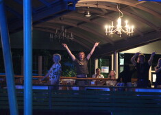 Uzņēmējs Māris Gavars ar draudzeni Daci Blanku aktīvi atpūtās grupas „Jumprava” jubilejas koncertā.