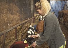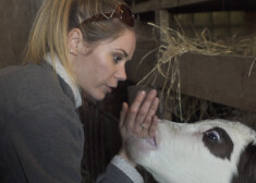 Jenny May pirmo reizi mūžā baro teliņu un pa laukiem "gāzē" ar traktoru