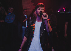 Ceturtdien Rīgas klubā “de flou” mūziķis Justs Sirmais savu tuvāko draugu lokā nosvinēja albuma “Here I Am” iznākšanu.