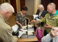 Grāmatas atvēršanas svētkos tika sumināts tās galvenais varonis - filmas "Četri balti krekli" režisors Rolands Kalniņš. Nesen viņa filma taču arī piedzīvoja pasaules pirmizrādi Kannu kinofestivālā. Tā nu Kalniņam nācās gan saņemt sveicēju sniegtos ziedus, gan pašam dāļāt autogrāfus.