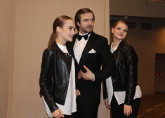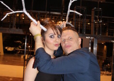 Simpātisku jaunkundžu kompānijā aizkulisēs sastapām arī grupas „Dzelzs vilks” solistu Juri Kaukuli. Viņš savas gaidāmās uzstāšanās dejotājām palīdzēja gan izvēlēties piemērotākos apavus, gan novērtēja priekšnesuma atribūtiku, piemēram, ragus, ko neliedza pat pielaikot viņa galvai.