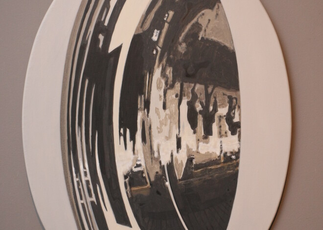 "Izstādes tapšanas procesā aizvirzījos līdz slāņiem, un par galveno tēmu kļuva laiks. Tas ir kā dzīvē - klājam kārtu uz kārtas, un tad laiks kaut ko noloba un atsedz iepriekšējo. Arī nejauši atrastie izšuvumi ir laiks. Es gleznoju no kreisās puses, un nejauši nonācu līdz sava veida puantilismam. Arī pašā izstādē būs viena apaļa glezna ar nosaukumu "Punkts", jo punkts ir visa sākums," tā māksliniece.