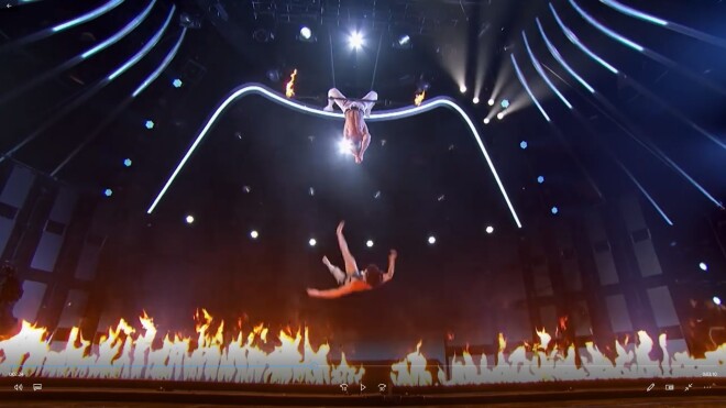 Ar milzu izbīli gan skatītājiem, gan žūrijai beigusies kāda akrobātu pāra uzstāšanās talantu šovā "America’s Got Talent" - vīrs priekšnesuma kulminācijas brīdī nenotvēra savu sievu un tā no liela augstuma krita, kā no malas šķita, taisni liesmās.