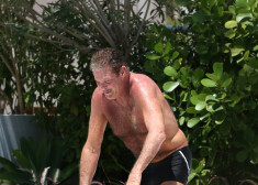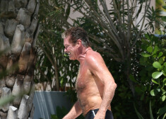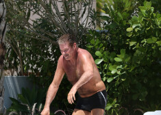 Deivids Haselhofs ar līgavu atpūšas pie baseina