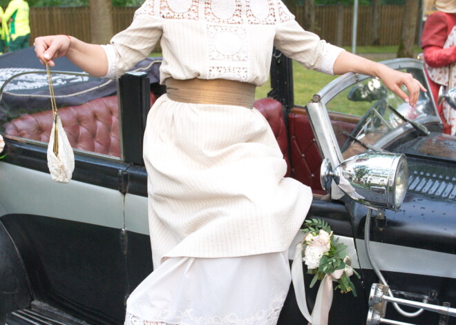 FOTO: Martinsone, Šimkus, Eglija - sabiedrībā zināmas dāmas demonstrē krāšņus jūgendstila tērpus