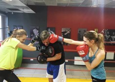 Karlīne Caune, Vita Plūme un Arnis Ritenieks boksa treniņā