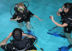 Ieva Florence un Kristīne Komarovska mācās nirt
