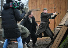 Spēlfilmas "Puika ar suni" uzņemšanas laukumā