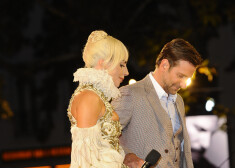 Lady Gaga un Bredlijs Kūpers filmas „A Star Is Born” pirmizrādes vakarā Londonā.