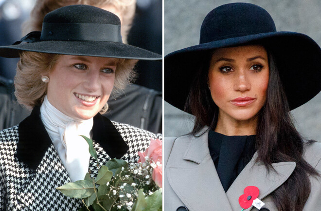 1987. gadā Diāna lika galvā zīmola „Philip Somerville” platmali, kad viesojās Minhenē, Vācijā. Melnu cepuri ar platām malām Megana izvēlējās, kad 2018. gadā apmeklēja kara veterāniem veltītu dievkalpojumu Londonā.