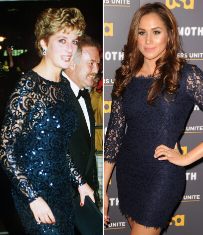 1996. gadā princese Diāna apbūra saviesīga vakara viesus tumši zilā mežģīņu kleitā. Pierādot, ka šis tonis nekad neizies no modes, Megana tumši zilu mežģīņu kleitu izvēlējās daudzus gadus vēlāk, kad viņa kā aktrise piedalījās seriāla „Suits” reklāmas pasākumā.