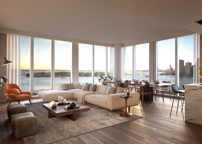 Dzīvokļa jaunais īpašnieks varēs priecāties par elpu aizraujošiem skatiem uz pilsētas ostu, Brīvības statuju, kas atrodas uz netālu esošās Brīvības salas, Bruklinas tiltu, Pasaules tirdzniecības centru un citiem iespaidīgajiem Ņujorkas debesskrāpjiem.