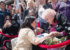 Princis Harijs un Megana Mārkla sasveicinās ar 98 gadus vecu fani