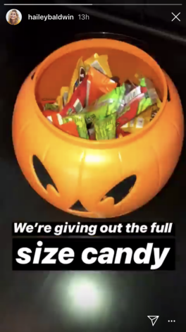 Heilija Boldvina sava „Instagram” profila stāstu sadaļā atklājusi, ka abi ar Džastinu dalījuši saldumus tiem Halovīna svinētājiem, kas staigāja pa mājām un jautāja pēc saldumiem vai solīja izjokot.