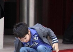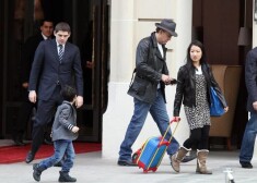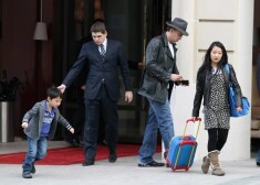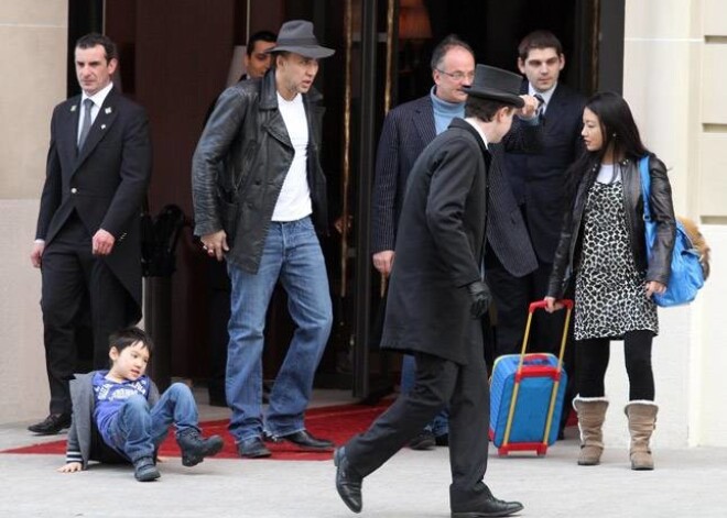 Nikolasa Keidža dēlēns draiskojas pie viesnīcas