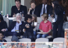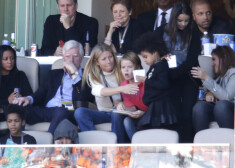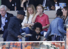 Lai gan Gvinetas Paltrovas un Krisa Mārtina laulība pērn oficiāli šķirta, aktrise ar bērniem Eplu un Mozu (9) bija devusies uz „Levi” stadionu, lai klātienē vērotu bijušā vīra uzstāšanos. Tribīnēs Gvinetai un Mozum pievienojās arī mazā Blū Aivija.
