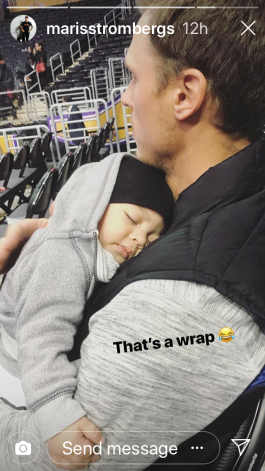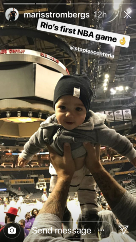 Māris Štrombergs savu ģimeni - sievu Natašu un mazo dēlu Rio - aizvedis Losandželosā uz maču, kurā Dāvja Bertāna pārstāvētā Sanantonio "Spurs" mērojās spēkiem ar vietējo "Lakers" komandu.
