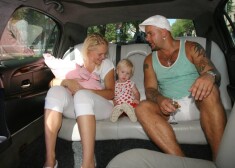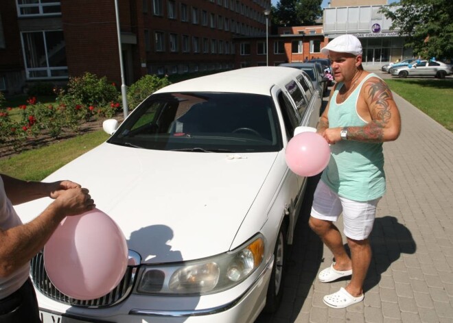 Kiviču ģimene no Dzemdību nama mājup dodas limuzīnā
